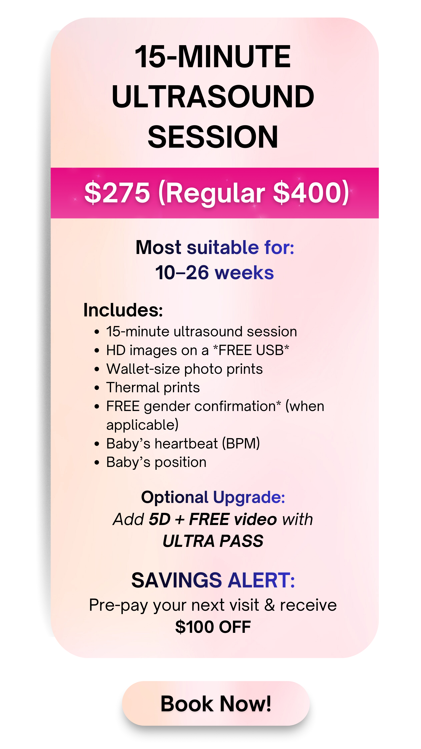 Elective Ultrasounds (2D/3D/4D/HD) can only be performed on pregnant women who are under the care of a physician. Please call us if you have any questions regarding elective ultrasounds.