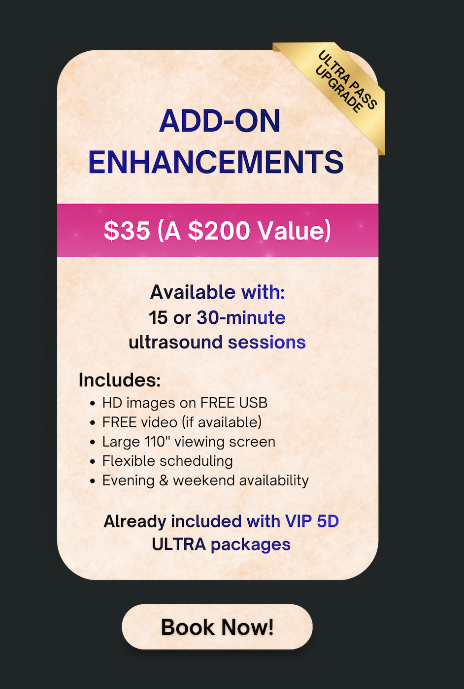 Elective Ultrasounds (2D/3D/4D/HD) can only be performed on pregnant women who are under the care of a physician. Please call us if you have any questions regarding elective ultrasounds.
