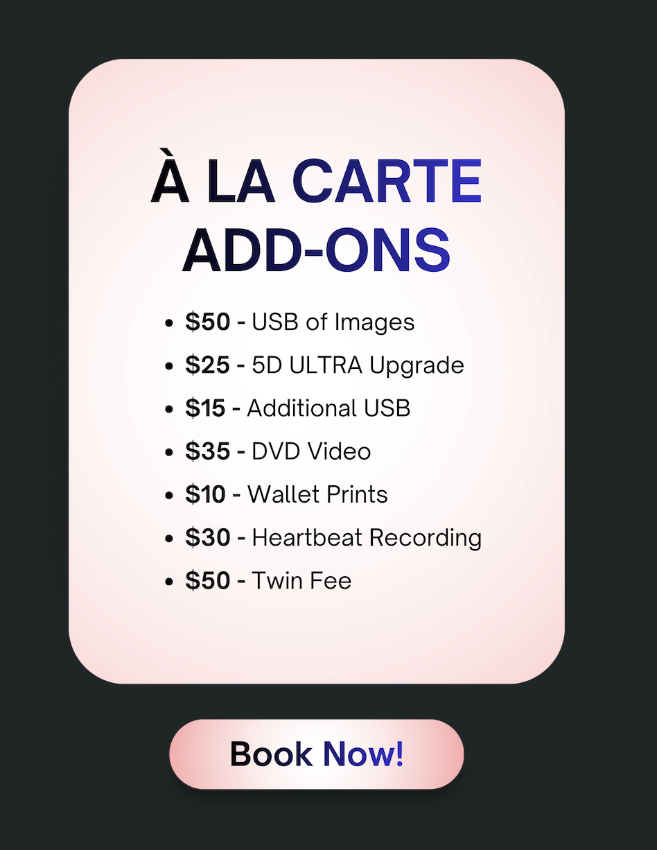 Elective Ultrasounds (2D/3D/4D/HD) can only be performed on pregnant women who are under the care of a physician. Please call us if you have any questions regarding elective ultrasounds.